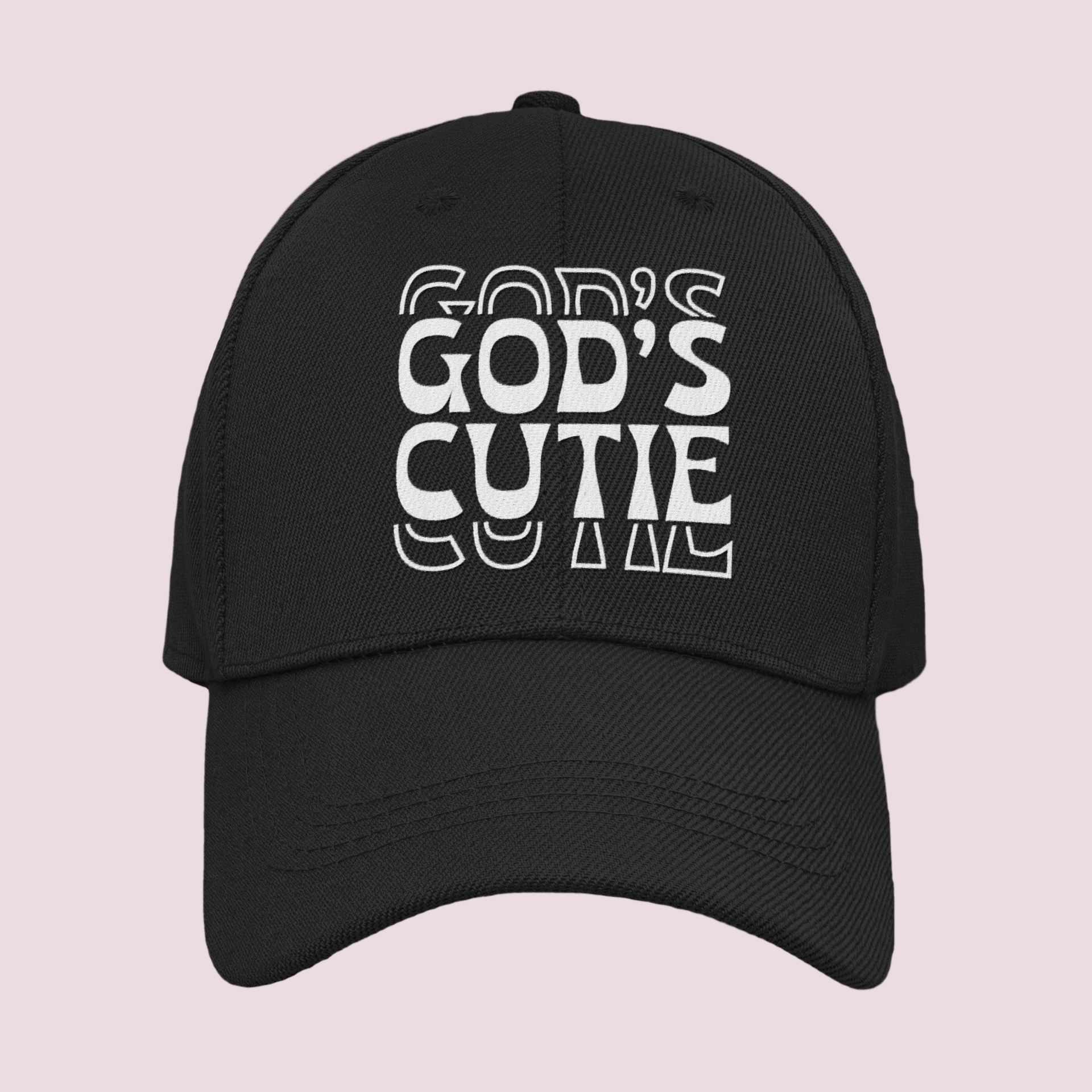 The White Double God's Cutie Distress Hat. Made with 100% pre-shrunk cotton twill, this Dad Hat features a soft crown and an adjustable hook-and-loop closure for a comfortable fit. The distressed fabric on the brim and crown adds a trendy touch to any outfit.