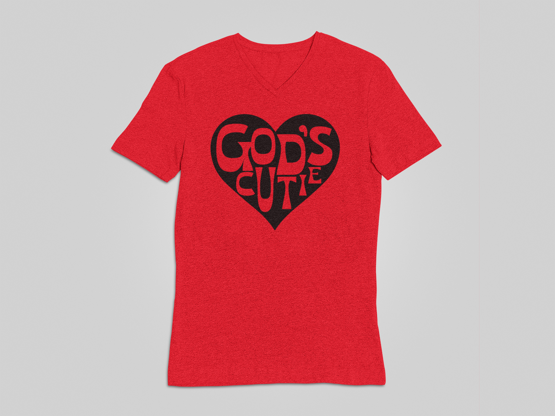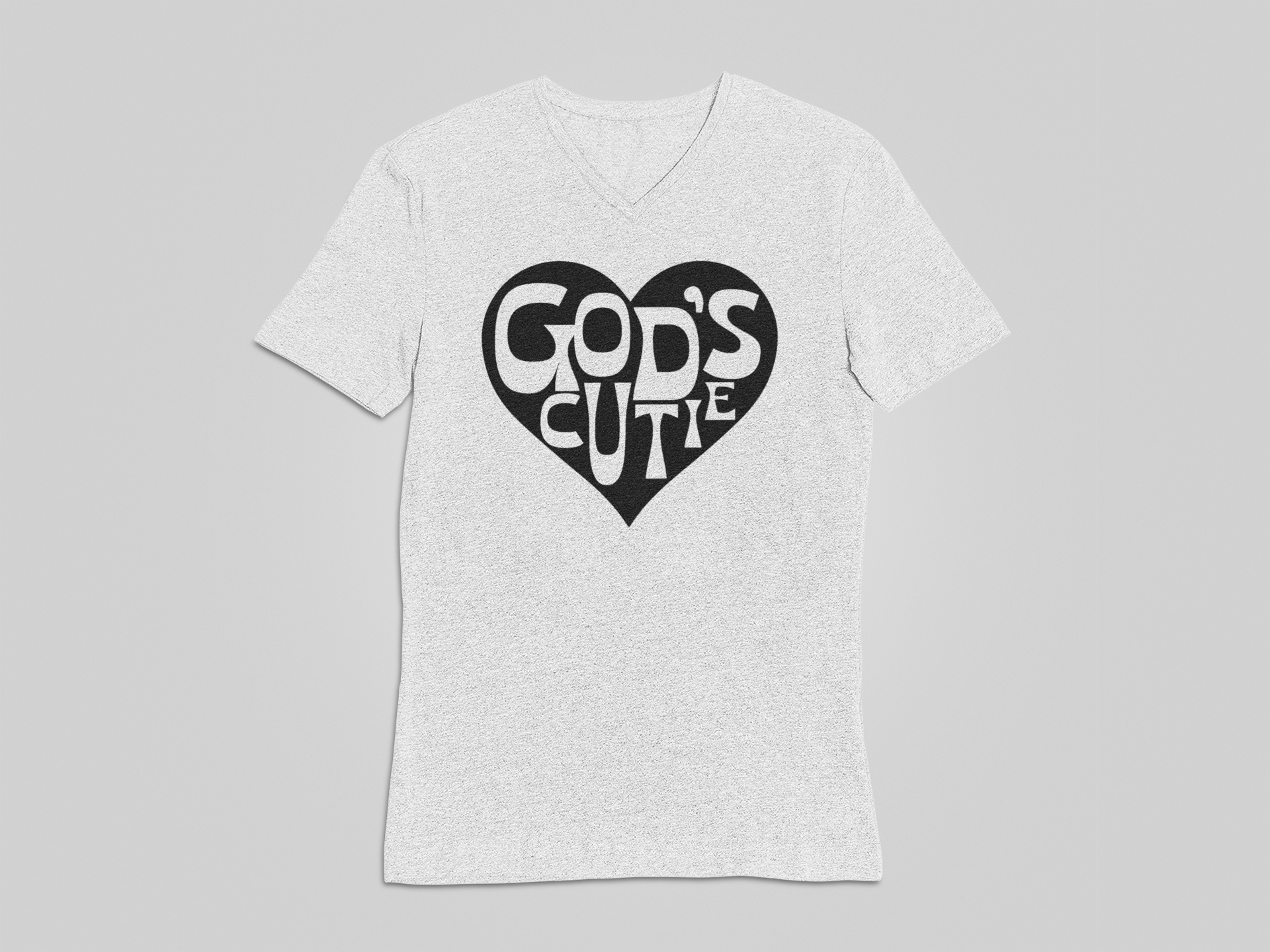 Discover unparalleled comfort and style with the Black Heart God's Cutie V-Neck T-Shirt. Crafted with 100% Airlume combed, ring-spun cotton, and a touch of elasticity, this T-shirt guarantees unbeatable plushness and ease. Join our satisfied customers and get yours today.